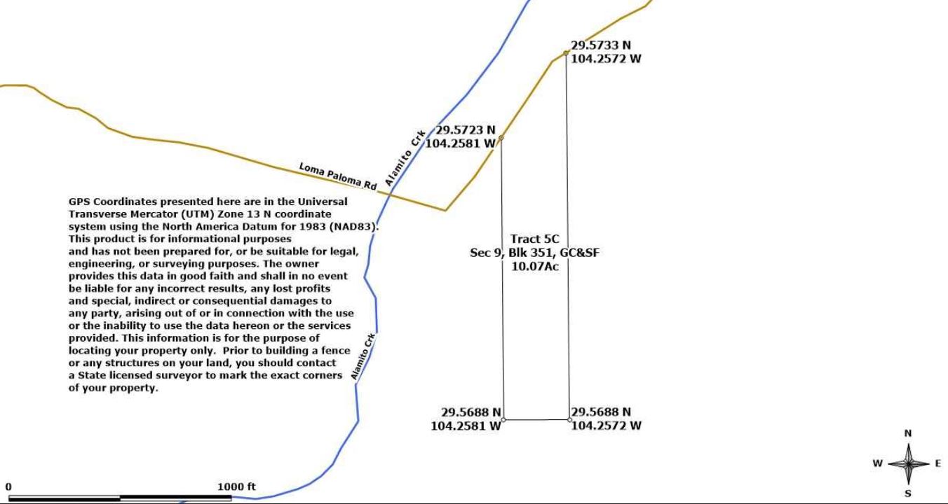 Legal Description: Tract 5C, a 10.07 acre tract out of Section 9, Block 351, GC & SF RR Company Survey, Presidio County, Texas.