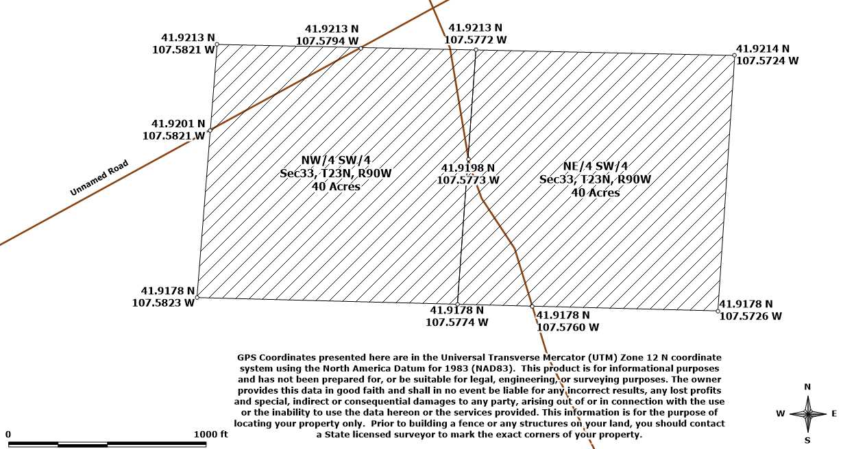Northeast Quarter of the Southwest Quarter Section 33, Township 23 North, Range 90 West, 40 Acres.